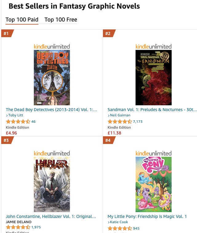 With Dead Boy Detectives launched last Thursday on Netflix, and now Top Ten in over seventy countries, it took me until yesterday evening to check if this meant the comics were selling.