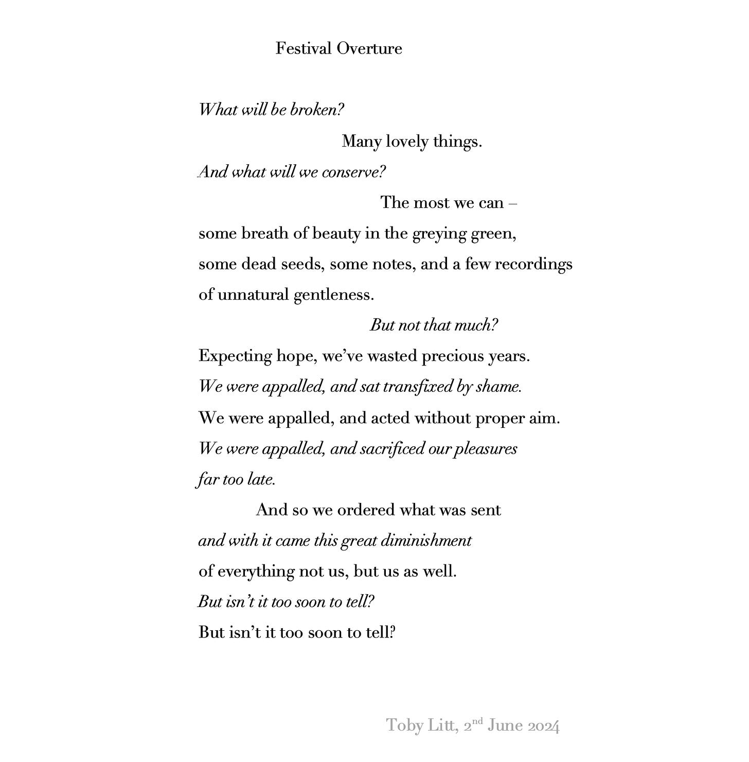 This, written this morning, is what I have to say in response.