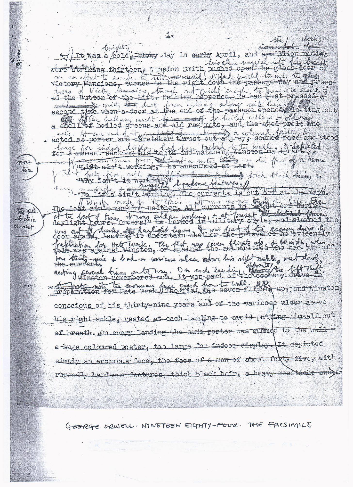 Later, at university, I found my way to George Orwell’s Nineteen Eighty-Four: The Facsimile of the Extant Manuscript. This amazed me. Orwell had typed up the whole novel, then seemed to have been dissatisfied with every single sentence.